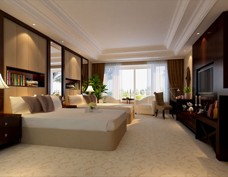 工程說明:此酒店的設計中,根據不同區域的功能而進行分區設計。例如酒店客房的設計中,溫暖舒適,給人賓至如歸之感。整個設計將實用和唯美的理念相融合。